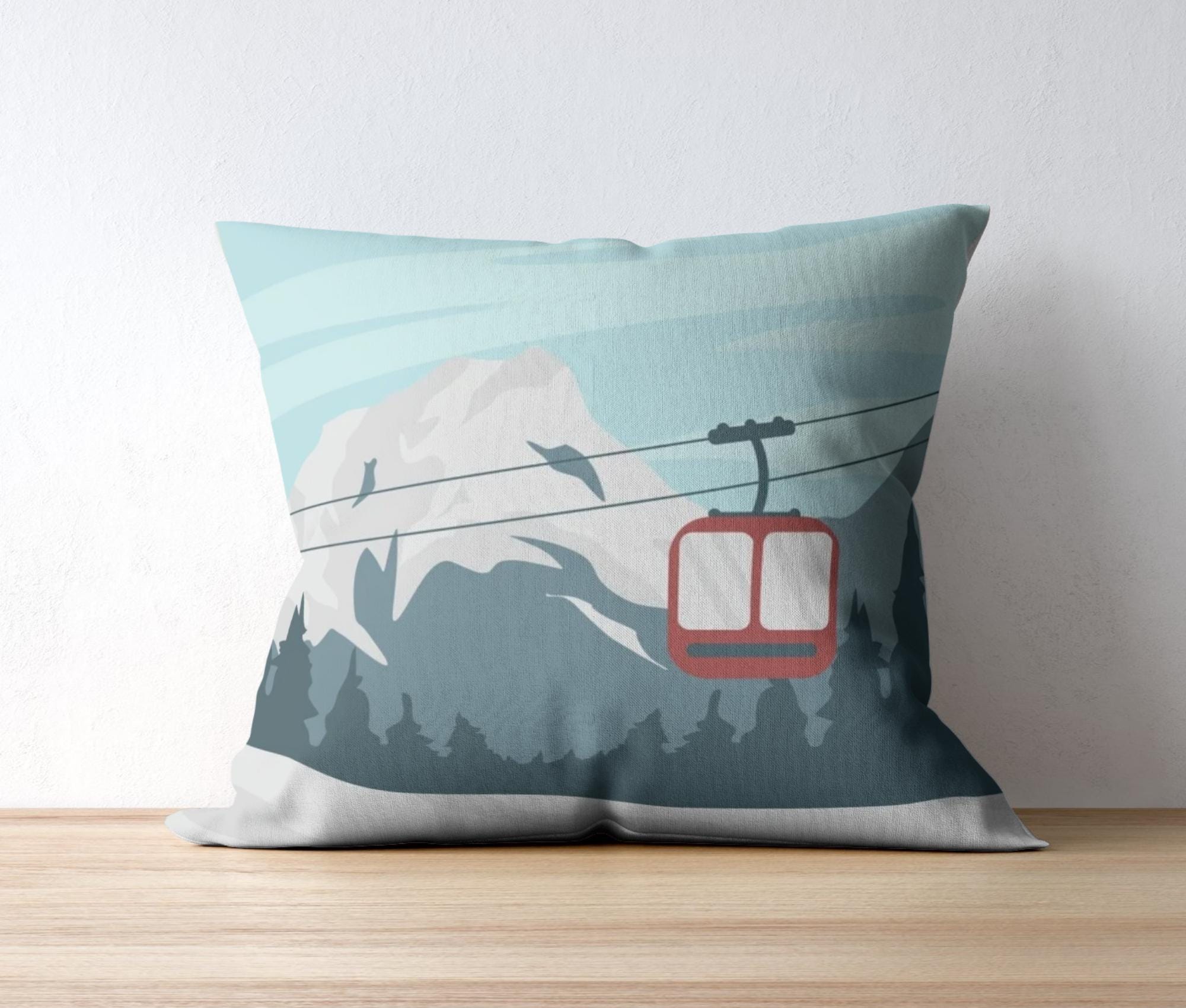 Ski Kissen Gondel | Quadratisches Baumwoll-Kissen mit Füllung | Motiv Wintersport Skifahren | Geschenk Skifahrer