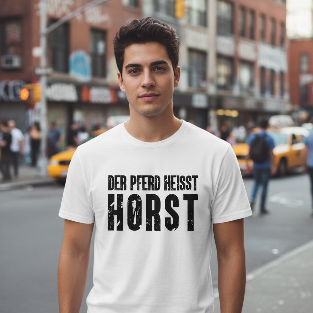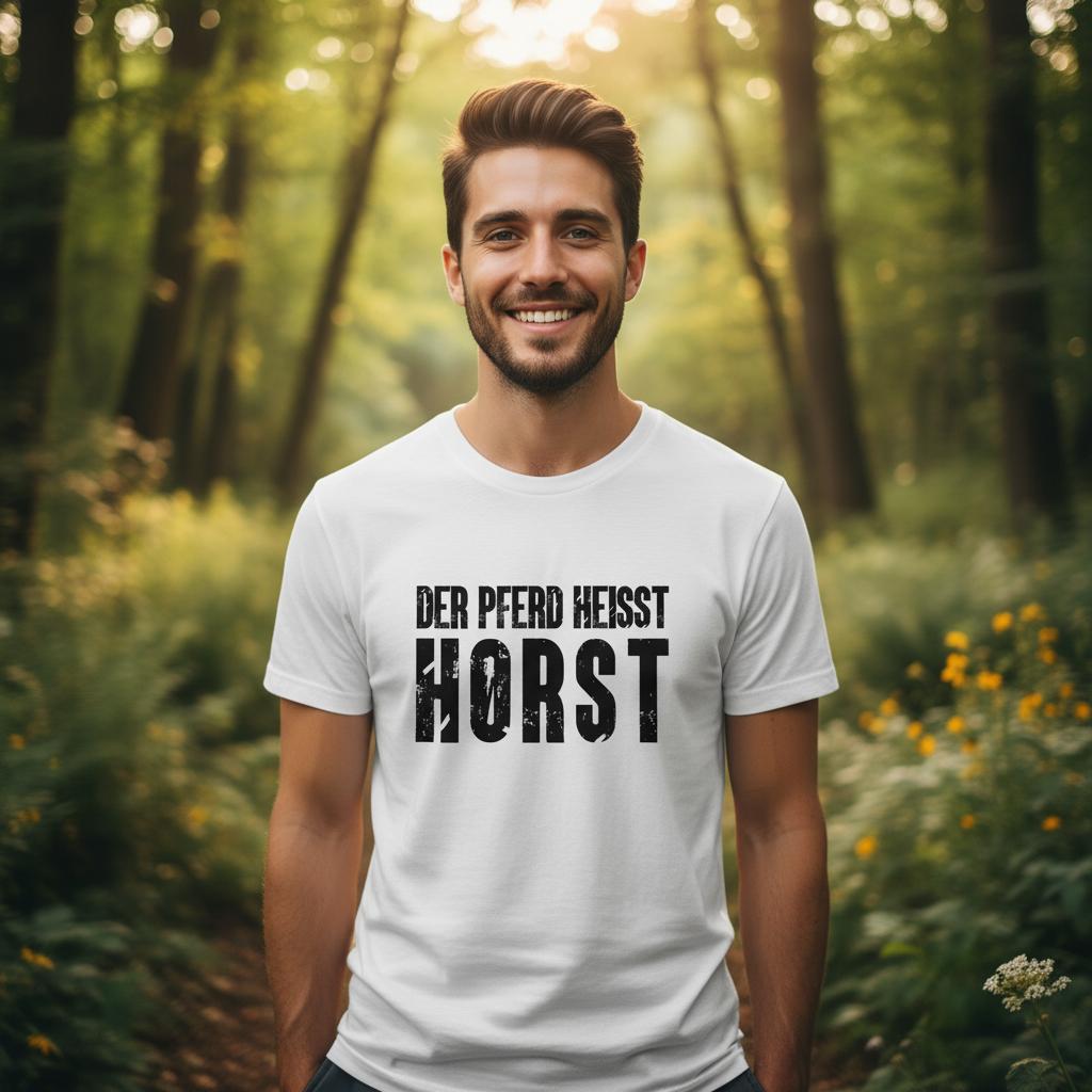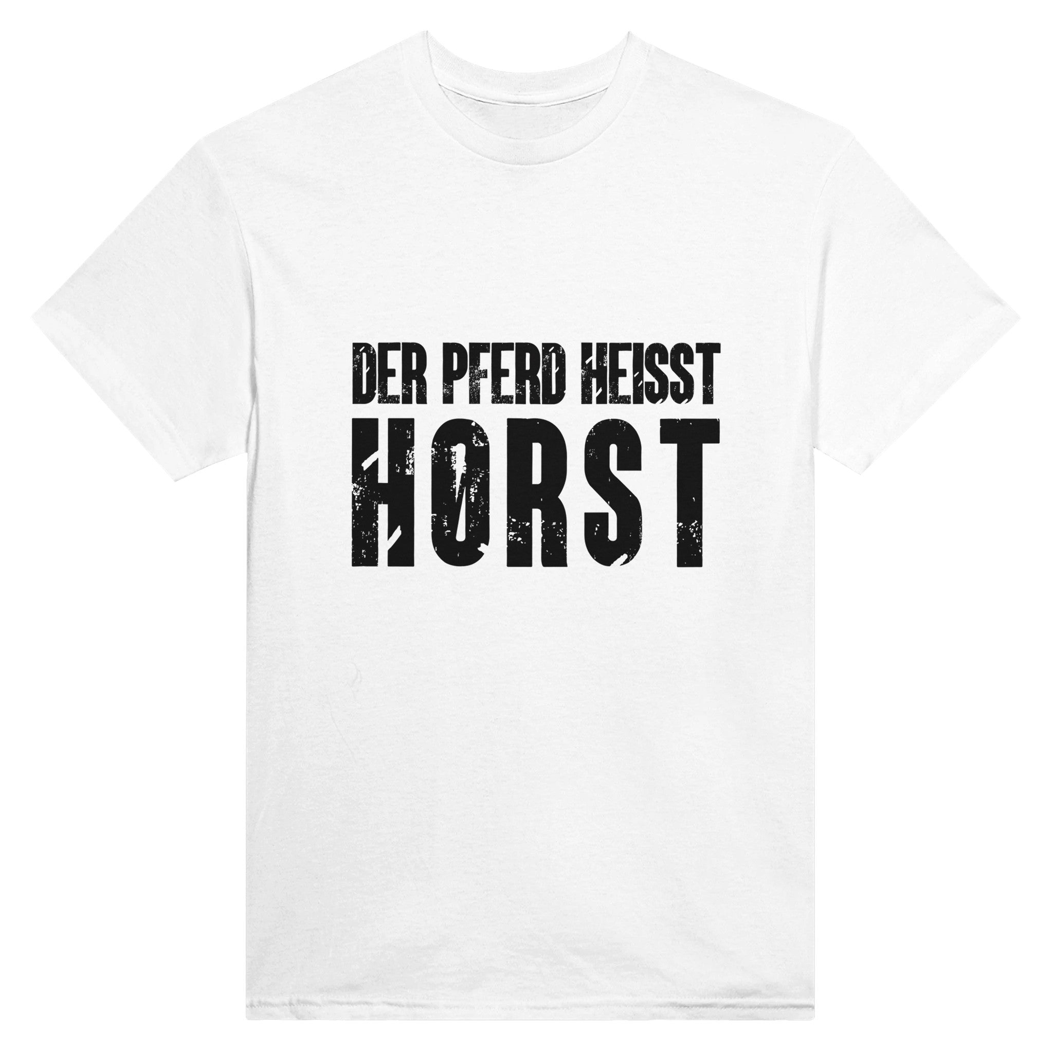 Witziges Männer T-Shirt 'Der Pferd heißt Horst' – Kultspruch Shirt in Weiß oder Grau