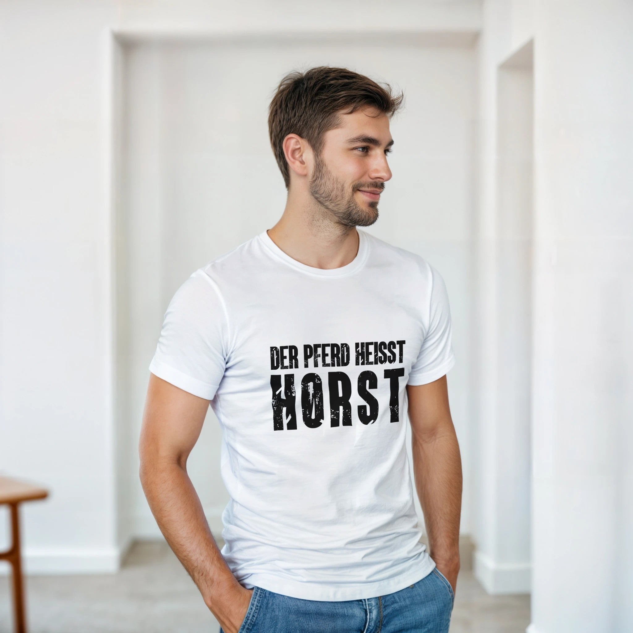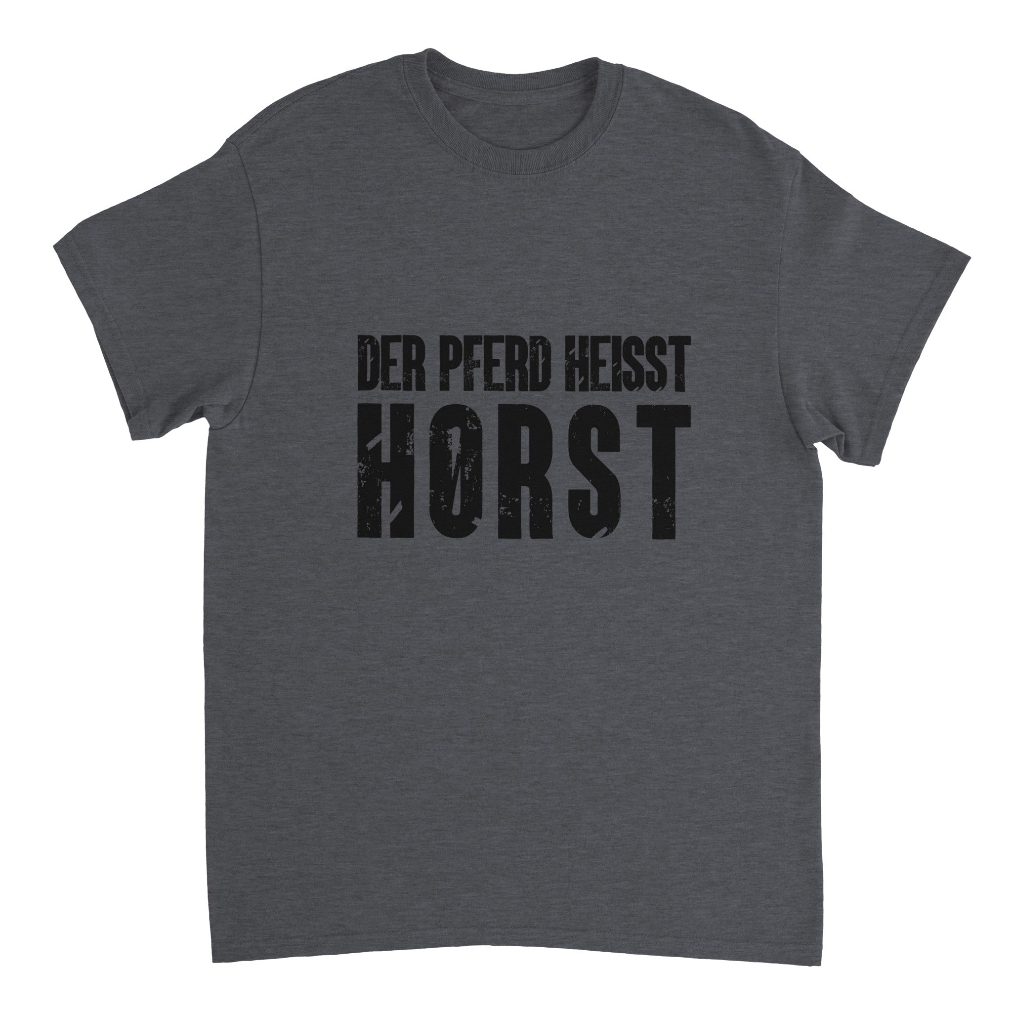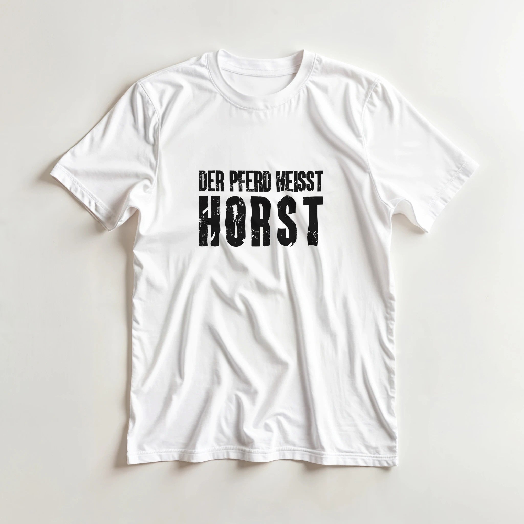 Witziges Männer T-Shirt 'Der Pferd heißt Horst' – Kultspruch Shirt in Weiß oder Grau
