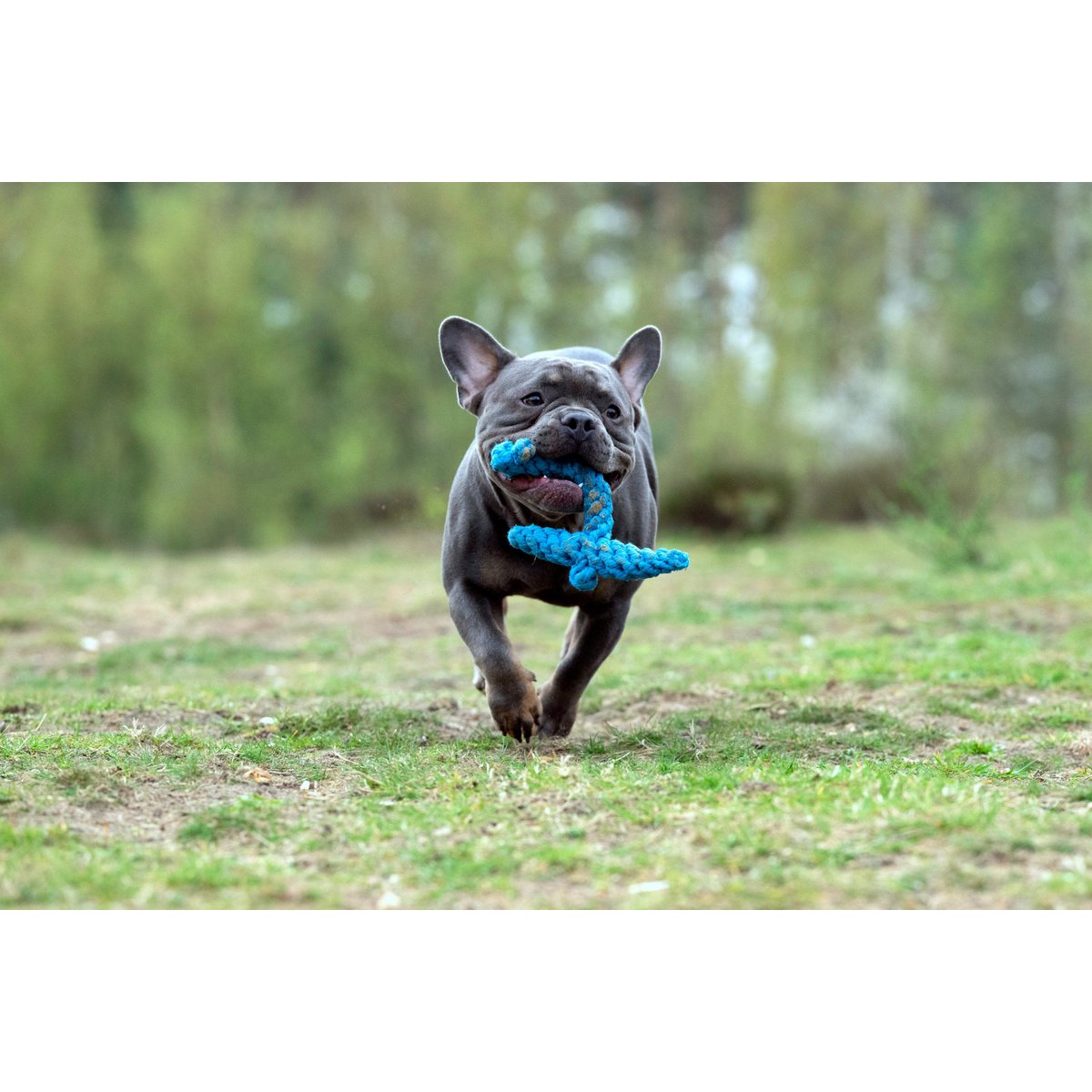 Das handgeknüpfte Hunde-Spielzeug von LABONI ist neben Wurf- und Apportierspielen auch als Kauspielzeug geeignet und bietet einen tollen Zusatznutzen, denn die Baumwollfasern reinigen spielerisch die Zähne Ihres Lieblings. Alle LABONI TOYS sind für ein sicheres Spielvergnügen vom TÜV Süd nach Kinderspielzeugrichtlinie getestet und für Design und Funktionalität mit einem International Design Award prämiert. Ein tolles Geschenk für Ihren Vierbeiner! Als Kanzlerin der LABONI-Partei fordert Angela Anker mehr Spass für Hunde! Angela ist eine treue Seele, die stets die Ruhe bewahrt und ihren vierbeinigen Freunden in stürmischen Zeiten Halt gibt. Ihr knalliges Türkis ist Ausdruck ihrer erfrischenden, weltoffenen und ehrlichen Art. Sie ist weich geknüpft und eignet sich daher auch hervorragend für Senioren. Wie alle LABONI TOYS ist Angela in aufwendiger Handarbeit aus natürlichen Baumwollfasern geflochten, die als tollen Nebeneffekt eine zahnreinigende Wirkung haben. Das strapazierfähige Material ist maschinenwaschbar, weshalb sich das Kultspielzeug in Ankerform sowohl für Wurf- und Apportierspiele während der Gassi-Runde als auch als Kauspielzeug für Zuhause eignet.