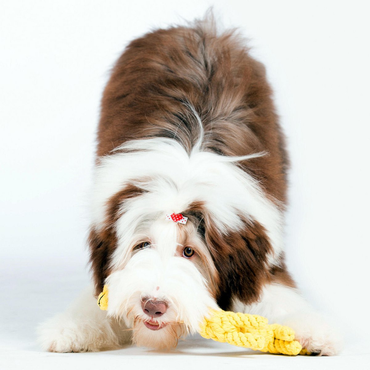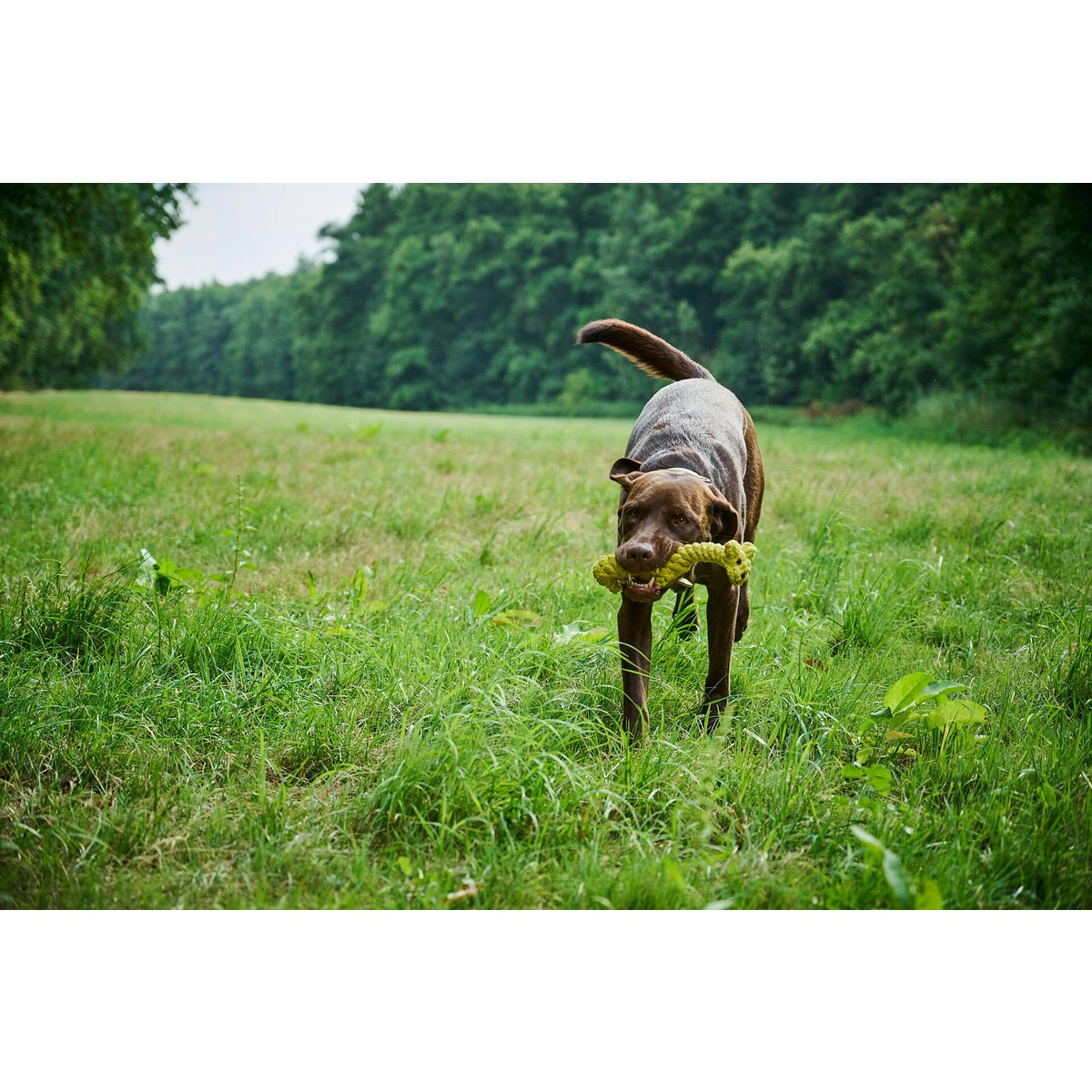 Greta Giraffe - Kult-Spielzeug für Hunde Robustes Hundespielzeug aus zahnpflegendem Baumwolltau Greta Giraffe hat das Spielvergnügen stets im Blick, denn sie weiss genau, worauf es ankommt. Ihre elegante Statur und ihr langer und biegsamer Hals sind optimal zum Festhalten geeignet und bieten damit Spielspass für Gross und Klein. Dank der hochwertigen Verarbeitung und der länglichen Statur sind Gretchen und Greta Giraffe ideal für abwechslungsreiche Kau-, Wurf- und Apportierspiele und wilde Tobereien. Ein toller Nebeneffekt ist dabei die zahnreinigende Wirkung der Baumwollfasern. Das robuste Material ist maschinenwaschbar bei 30 Grad und hält sogar spitzen Welpenzähnchen stand.