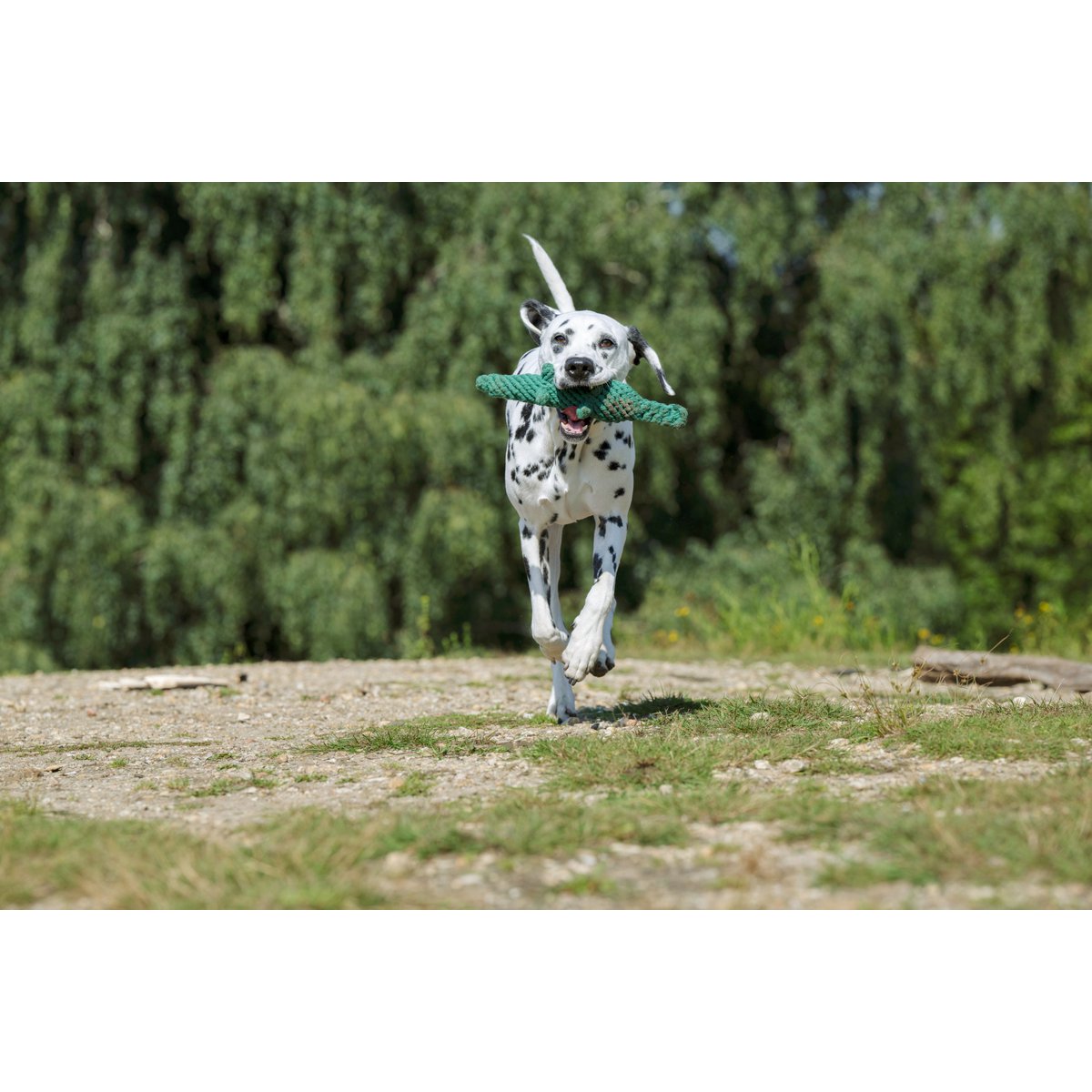 Kalli Krokodil - Kult-Spielzeug für Hunde Robustes Hundespielzeug aus zahnpflegendem Baumwolltau Ob Kauen, Werfen oder Apportieren, die LABONI TOYS wecken den natürlichen Spieltrieb und bringen Abwechslung in den Alltag Ihres Vierbeiners. Doch damit nicht genug, denn sie reinigen zudem spielerisch die Zähne Ihres Lieblings! Kalli ist ein gutmütiges Krokodil und ist nur wegen seiner imposanten Größe von gut 31 cm zu seinem Spitznamen, "Drache des Nils", gekommen. Wenn er nicht gerade als Manager für den 1. FC LABONI unterwegs ist, liegt Kalli am liebsten auf der faulen Haut und lässt es sich in der Sonne gut gehen. Zu seinen grössten Verdiensten um den Club gehören die Verpflichtungen von Kristof Krabbe, Poldi Pinguin und Welttorhüter Thaddäus Tintenfisch. Kalli Krokodil ist wie alle LABONI TOYS in aufwendiger Handarbeit aus natürlichen Baumwollfasern geflochten. Aufgrund seiner länglichen Form eignet sich Kalli gut für Kau-, Wurf- und Apportierspiele mit Junghunden und grösseren Rassen. Dank der hochwertigen Verarbeitung und dem robusten Material hält das niedliche Krokodil auch spitzen Welpenzähnchen stand und befriedigt gleichzeitig das natürliche Kaubedürfnis Ihrer Fellnase. Ein toller Nebeneffekt ist die zahnreinigende Wirkung der natürlichen Baumwollfasern. Das strapazierfähige Material ist leicht sauber zu halten und maschinenwaschbar bei 30 Grad. Somit ist Kalli Krokodil Indoor und Outdoor ein treuer Begleiter, an dem Ihr Hund lange Freude haben wird. Überzeugen Sie sich selbst! Vorteile Gesundheitsfördernd & sicher reinigt die Zähne auf spielerische Weise befriedigt das Kaubedürfnis aus reiner Baumwolle, mit Naturfarben eingefärbt für Kau-, Wurf- und Apportierspiele Manufaktur statt Massenware robust gefertigt in aufwendiger Handarbeit die TOYS sind nicht unzerstörbar, sondern dafür gefertigt, zerkaut zu werden Pflegeleicht & hygienisch waschbar bei 30 Grad Geprüfte Qualität & mehrfach prämiertes Design TÜV Süd geprüftes Spielvergnügen IDA International Design Awards Winner nachhaltig & recyclebar Eigenschaften Grössen: 32x7x9 cm Material: reine Baumwolle mit Naturfarben eingefärbt Pflegehinweis: maschinenwaschbar bei 30°C Hinweis: Unsere Kollektionen werden von Hand gefertigt und bestehen aus Naturmaterialien, daher sind Abweichungen in Farbe, Struktur und Grösse möglich. Dies macht den individuellen Charme unserer Designprodukte aus. Bitte haben Sie Verständnis, dass die Angaben und Bilder auf unserer Webseite deshalb nicht immer exakt das von Ihnen gewählte Produkt widergeben können. Pressestimmen R2M One Rolls-Royce Magazine: Wenn man eine Weile in die wunderbare Welt von LABONI eintaucht, will man zwei Dinge. Etwas kaufen. Und wenn nicht schon vorhanden – einen Hund. UPPER CLASS Magazine: LABONI bietet ein cleveres Sortiment an tierisch schönen und vor allem praktischen Essentials, die das Leben von Hunde-Fans mit ihren treuen Begleitern einfach noch besser machen! FEEL GOOD Magazine: Markenzeichen der unkonventionellen Schweizer Kreativschmiede sind Funktionalität, Design und höchster Komfort gepaart mit einem eleganten Sinn für Humor und einem besonderen Gespür dafür, was Hund und Halter wirklich Freude bereitet.