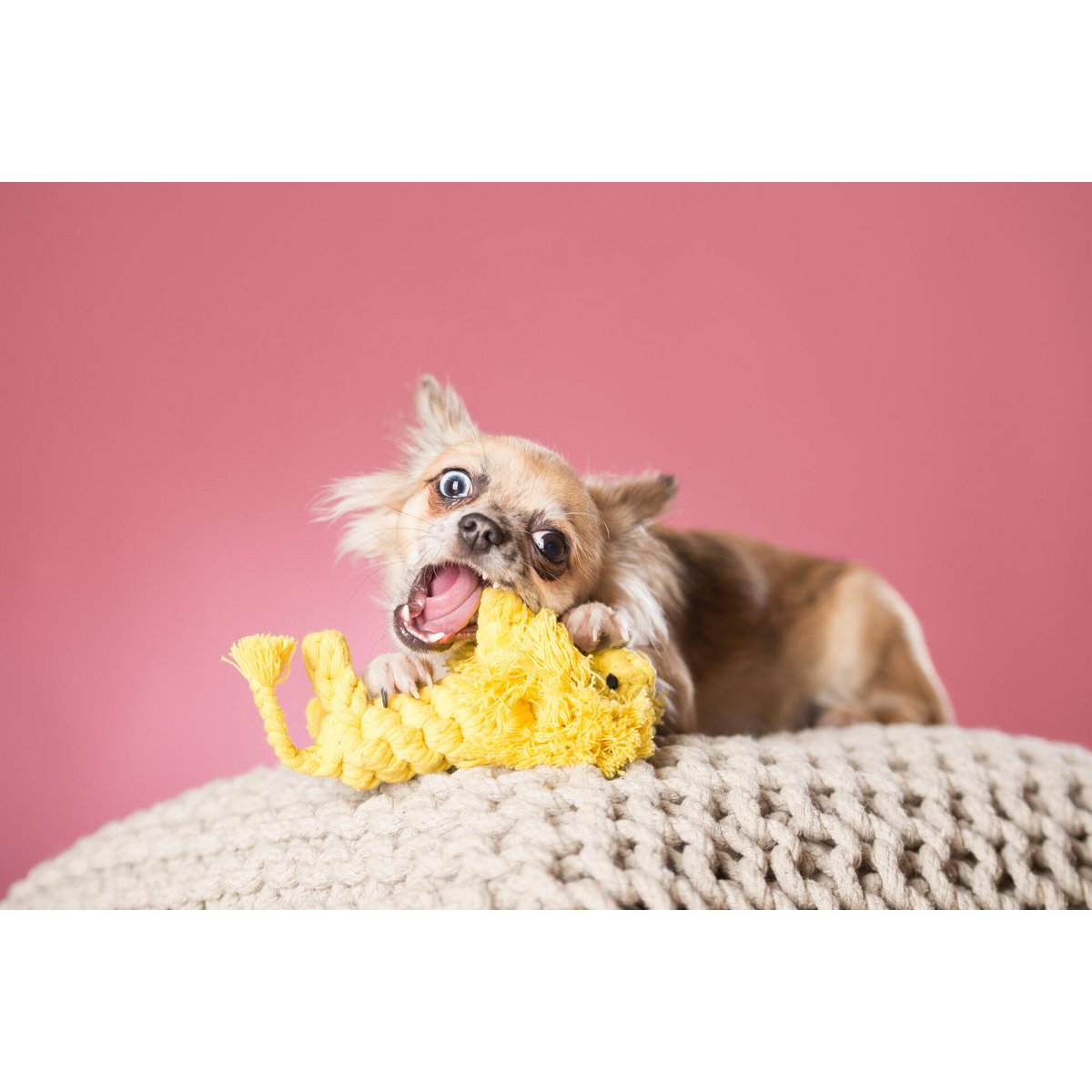 Leo Löwe - Kult-Spielzeug für Hunde Robustes Hundespielzeug aus zahnpflegendem Baumwolltau Der extrovertierte Löwe Leo gehört mit seiner Sturmfrisur zu den schillerndsten Figuren im Spielzeug-Business und bringt Spielvergnügen mit Zusatznutzen in den modernen Hundehaushalt, denn die natürlichen Baumwollfasern reinigen spielerisch die Zähne Ihres Lieblings! Als Toy-Promoter erlangte er 1974 Berühmtheit, als er den „Rumble in the Jungle“ mit dem Boxlegenden Kurt Känguru veranstaltete. Der King ist besonders stolz auf seine prächtige Löwenmähne, die als Kauspielzeug genutzt wird, den Unrat der Zahnzwischenräume mächtig beeindrucken kann. Das schlagfertige Schlitzohr ist aufgrund seiner Größe sowohl für Welpen als auch für kleine und mittlere Hunde ein perfekter Spielkamerad. Das handgeknüpfte Spielzeug von LABONI ist robust verarbeitet, maschinenwaschbar und hält sogar Spitzen Welpenzähnchen stand. Wie alle LABONI TOYS ist auch Leo Löwe vom TÜV Süd nach Kinderspielzeugrichtlinie geprüft und für das besondere Design und seine hohe Funktionalität mit einem International Design Award ausgezeichnet. Freuen Sie sich auf wilde Tobereien mit Ihrem Vierbeiner! Vorteile Gesundheitsfördernd & sicher reinigt die Zähne auf spielerische Weise befriedigt das Kaubedürfnis aus reiner Baumwolle, mit Naturfarben eingefärbt für Kau-, Wurf- und Apportierspiele Manufaktur statt Massenware robust gefertigt in aufwendiger Handarbeit die TOYS sind nicht unzerstörbar, sondern dafür gefertigt, zerkaut zu werden Pflegeleicht & waschbar Textilien bei 30 Grad Geprüfte Qualität & mehrfach prämiertes Design TÜV Süd geprüftes Spielvergnügen IDA International Design Awards Winner nachhaltig & recyclebar Eigenschaften Grössen: 15x7x6 cm Material: reine Baumwolle mit Naturfarben eingefärbt Pflegehinweis: maschinenwaschbar bei 30°C Hinweis: Unsere Kollektionen werden von Hand hergestellt Hergestellt und bestehen aus Naturmaterialien, daher sind Abweichungen in Farbe, Struktur und Grösse möglich. Dies macht den individuellen Charme unserer Designprodukte aus. Bitte haben Sie Verständnis dafür, dass die Angaben und Bilder auf unserer Webseite daher nicht immer exakt das von Ihnen gewählte Produkt widergeben können. Pressestimmen R2M One Rolls-Royce Magazine: Wenn man eine Weile in die wunderbare Welt von LABONI eintaucht, will man zwei Dinge. Etwas kaufen. Und wenn nicht schon vorhanden – einen Hund. UPPER CLASS Magazine: LABONI bietet ein cleveres Sortiment an tierisch schönen und vor allem praktischen Essentials, die das Leben von Hunde-Fans mit ihren treuen Begleitern einfach noch besser machen! FEEL GOOD Magazine: Markenzeichen der unkonventionellen Schweizer Kreativschmiede sind besondere Funktionalität, Design und höchster Komfort gepaart mit einem eleganten Sinn für Humor und einem Gespür dafür, was Hund und Halter Freude wirklich vorbereitet hat.