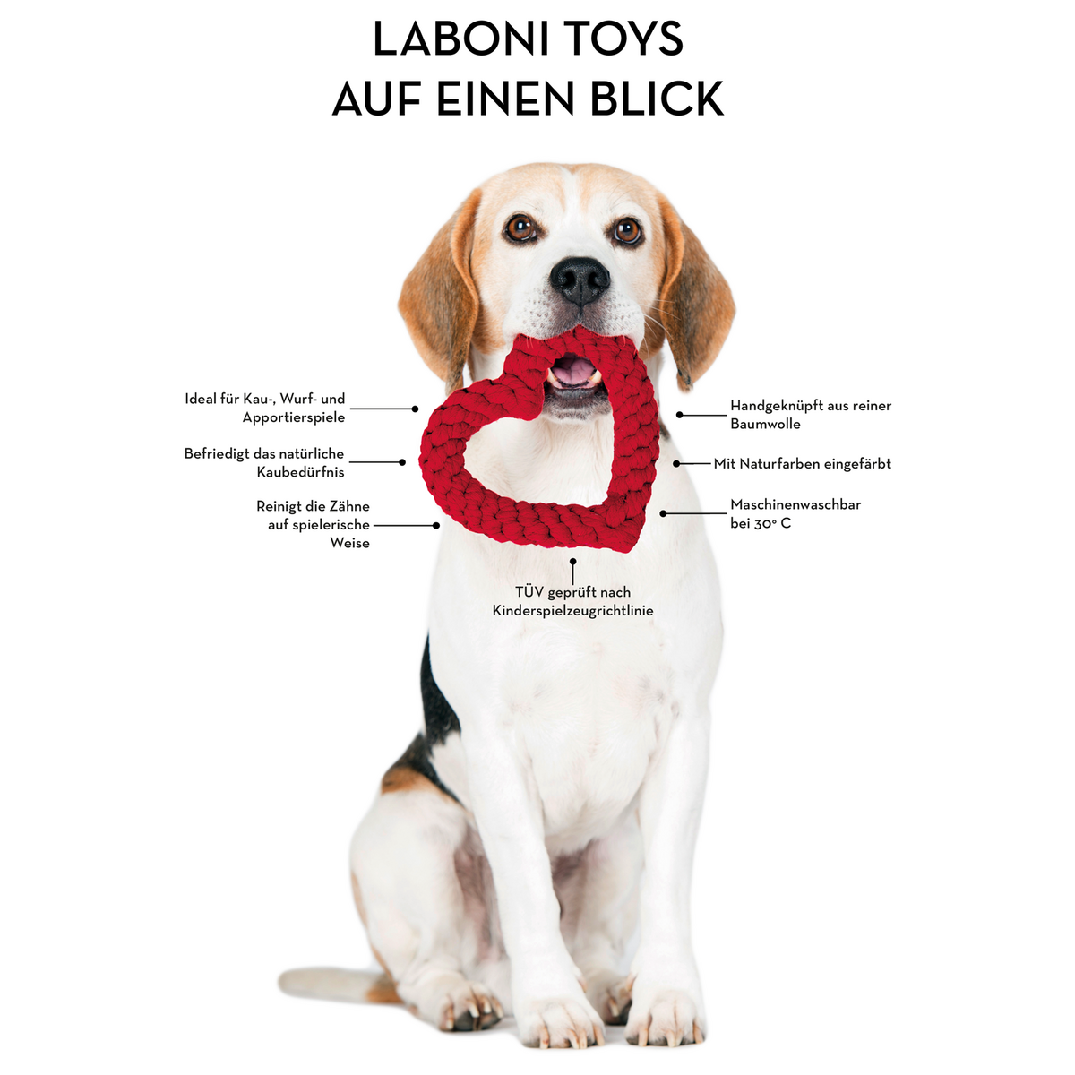 Summer Safari - Spielzeug-Set für Hunde Robustes Hundespielzeug aus zahnpflegendem Baumwolltau Gehen Sie mit Ihrem Liebling auf eine tierische Summer Safari und zaubern Sie einen Hauch von afrikanischer Exotik und wilder Steppe in Ihr Zuhause. Unsere LABONI Toys sind begehrte Trophäen für Ihren Vierbeiner und ideal für Kau-, Wurf- und Apportierspiele und außerdem zahnpflegend. Roarrr! Das handgeknüpfte Hunde-Spielzeug von LABONI ist neben Wurf- und Apportierspielen auch als Kauspielzeug geeignet und bietet einen tollen Zusatznutzen, denn die Baumwollfasern reinigen spielerisch die Zähne Ihres Lieblings. Alle LABONI TOYS sind für ein sicheres Spielvergnügen vom TÜV Süd nach Kinderspielzeugrichtlinie getestet und für Design und Funktionalität mit einem International Design Award prämiert. Ein tolles Geschenk für Ihren Vierbeiner! Elton Elefant zählt zu den renommiertesten und erfolgreichsten Spielzeugen aller Zeiten. Ob Kauen, Werfen oder Apportieren, das hochwertige Spielzeug ist ein Muss in jeder Spielzeugkiste und bringt Abwechslung in den Hunde-Alltag! Dank der hochwertigen Verarbeitung und der länglichen Statur ist Gretchen Giraffe ideal für abwechslungsreiche Kau-, Wurf- und Apportierspiele und wilde Tobereien und bieten Spielspass für Gross und Klein. Ein toller Nebeneffekt ist dabei die zahnreinigende Wirkung der Baumwollfasern. Franzi ist mit ihrem pinken Baumwollgefieder ein echter Hingucker, der Vier- und Zweibeinern den Kopf verdreht. Handgeknüpft aus reiner Baumwolle bietet sie stilvolles Spielvergnügen mit echtem Zusatznutzen für Ihren Hund. Vorteile Gesundheitsfördernd & sicher reinigt die Zähne auf spielerische Weise befriedigt das Kaubedürfnis aus reiner Baumwolle, mit Naturfarben eingefärbt für Kau-, Wurf- und Apportierspiele Manufaktur statt Massenware robust gefertigt in aufwendiger Handarbeit die TOYS sind nicht unzerstörbar, sondern dafür gefertigt, zerkaut zu werden Pflegeleicht & hygienisch waschbar bei 30 Grad Geprüfte Qualität & mehrfach prämiertes Design TÜV Süd geprüftes Spielvergnügen IDA International Design Awards Winner nachhaltig & recyclebar Eigenschaften Grössen: Mix Material: reine Baumwolle mit Naturfarben eingefärbt Pflegehinweis: maschinenwaschbar bei 30°C Hinweis: Unsere Kollektionen werden von Hand gefertigt und bestehen aus Naturmaterialien, daher sind Abweichungen in Farbe, Struktur und Grösse möglich. Dies macht den individuellen Charme unserer Designprodukte aus. Bitte haben Sie Verständnis, dass die Angaben und Bilder auf unserer Webseite deshalb nicht immer exakt das von Ihnen gewählte Produkt widergeben können. Pressestimmen R2M One Rolls-Royce Magazine: Wenn man eine Weile in die wunderbare Welt von LABONI eintaucht, will man zwei Dinge. Etwas kaufen. Und wenn nicht schon vorhanden – einen Hund. UPPER CLASS Magazine: LABONI bietet ein cleveres Sortiment an tierisch schönen und vor allem praktischen Essentials, die das Leben von Hunde-Fans mit ihren treuen Begleitern einfach noch besser machen! FEEL GOOD Magazine: Markenzeichen der unkonventionellen Schweizer Kreativschmiede sind Funktionalität, Design und höchster Komfort gepaart mit einem eleganten Sinn für Humor und einem besonderen Gespür dafür, was Hund und Halter wirklich Freude bereitet.