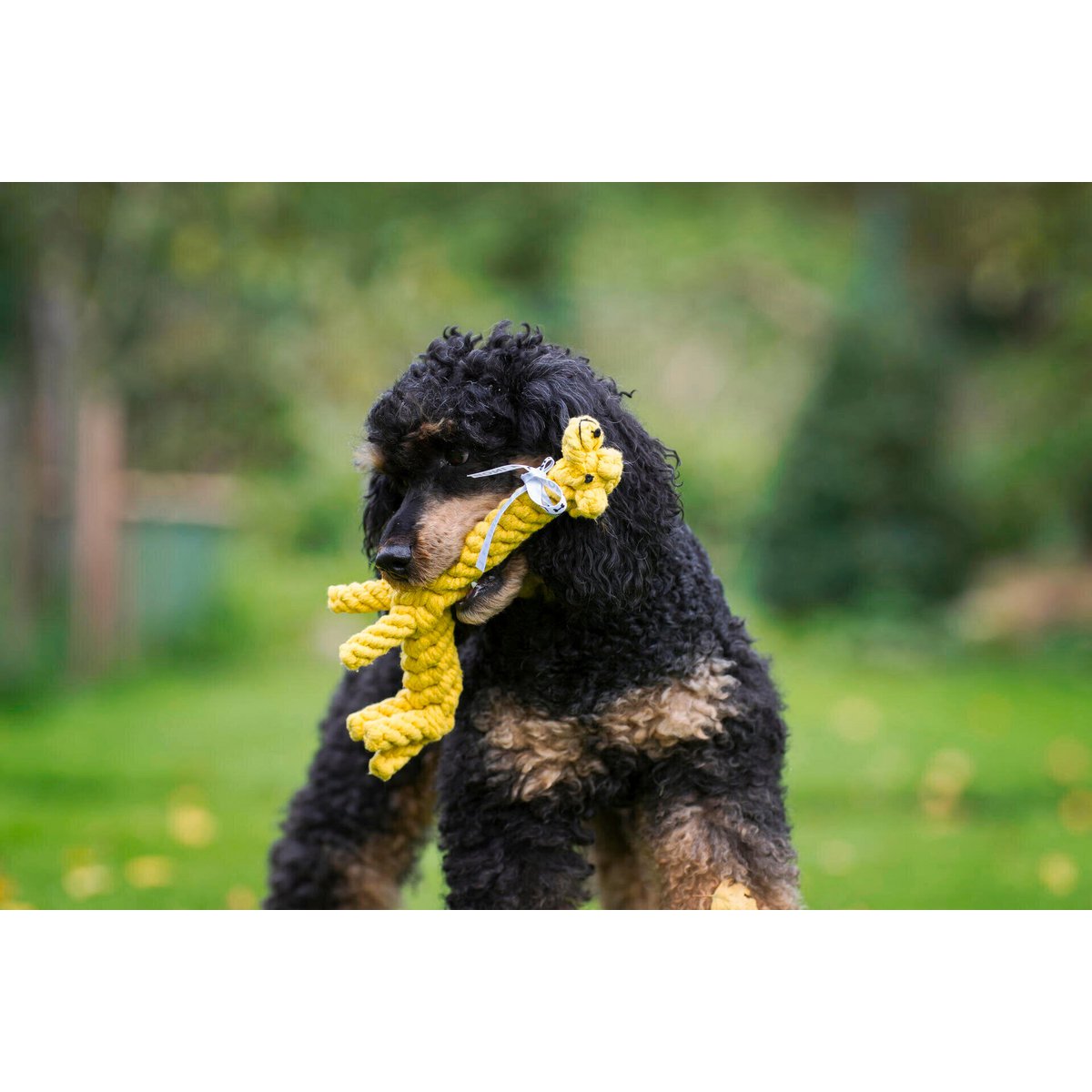 Wild Life - Spielzeug-Set für Hunde Robustes Hundespielzeug aus zahnpflegendem Baumwolltau Jetzt wird es wild! Mit dem Wildlife-Geschenkset von LABONI zieht ein Stück Natur in Ihr Wohnzimmer ein. Mit den robusten Hundespielzeugen Kalli Krokodil, Elton Elefant und Greta Giraffe erwartet Ihren Vierbeiner ein grosses Spielvergnügen. Bahnen Sie sich zwischen exotischen Tieren Ihren Weg durch den LABONI-Dschungel und profitieren Sie vom günstigen Set-Preis. Das handgeknüpfte Hunde-Spielzeug von LABONI ist neben Wurf- und Apportierspielen auch als Kauspielzeug geeignet und bietet einen tollen Zusatznutzen, denn die Baumwollfasern reinigen spielerisch die Zähne Ihres Lieblings. Alle LABONI TOYS sind für ein sicheres Spielvergnügen vom TÜV Süd nach Kinderspielzeugrichtlinie getestet und für Design und Funktionalität mit einem International Design Award prämiert. Ein tolles Geschenk für Ihren Vierbeiner! Elton Elefant zählt zu den renommiertesten und erfolgreichsten Spielzeugen aller Zeiten. Ob Kauen, Werfen oder Apportieren, das hochwertige Spielzeug ist ein Muss in jeder Spielzeugkiste und bringt Abwechslung in den Hunde-Alltag! Dank der hochwertigen Verarbeitung und der länglichen Statur Greta Giraffe ideal für abwechslungsreiche Kau-, Wurf- und Apportierspiele und wilde Tobereien und bieten Spielspass für Gross und Klein. Ein toller Nebeneffekt ist dabei die zahnreinigende Wirkung der Baumwollfasern. Kalli Krokodil ist wie alle LABONI TOYS in aufwendiger Handarbeit aus natürlichen Baumwollfasern geflochten. Durch seine Größe und Form ist das Spielzeug von LABONI ideal für Kau-, Wurf- und Apportierspiele mit Junghunden und grösseren Rassen geeignet. Vorteile Gesundheitsfördernd & sicher reinigt die Zähne auf spielerische Weise befriedigt das Kaubedürfnis aus reiner Baumwolle, mit Naturfarben eingefärbt für Kau-, Wurf- und Apportierspiele Manufaktur statt Massenware robust gefertigt in aufwendiger Handarbeit die TOYS sind nicht unzerstörbar, sondern dafür gefertigt, zerkaut zu werden Pflegeleicht & hygienisch waschbar bei 30 Grad Geprüfte Qualität & mehrfach prämiertes Design TÜV Süd geprüftes Spielvergnügen IDA International Design Awards Winner nachhaltig & recyclebar Eigenschaften Grössen: Mix Material: reine Baumwolle mit Naturfarben eingefärbt Pflegehinweis: maschinenwaschbar bei 30°C Hinweis: Unsere Kollektionen werden von Hand gefertigt und bestehen aus Naturmaterialien, daher sind Abweichungen in Farbe, Struktur und Grösse möglich. Dies macht den individuellen Charme unserer Designprodukte aus. Bitte haben Sie Verständnis, dass die Angaben und Bilder auf unserer Webseite deshalb nicht immer exakt das von Ihnen gewählte Produkt widergeben können. Pressestimmen R2M One Rolls-Royce Magazine: Wenn man eine Weile in die wunderbare Welt von LABONI eintaucht, will man zwei Dinge. Etwas kaufen. Und wenn nicht schon vorhanden – einen Hund. UPPER CLASS Magazine: LABONI bietet ein cleveres Sortiment an tierisch schönen und vor allem praktischen Essentials, die das Leben von Hunde-Fans mit ihren treuen Begleitern einfach noch besser machen! FEEL GOOD Magazine: Markenzeichen der unkonventionellen Schweizer Kreativschmiede sind Funktionalität, Design und höchster Komfort gepaart mit einem eleganten Sinn für Humor und einem besonderen Gespür dafür, was Hund und Halter wirklich Freude bereitet.