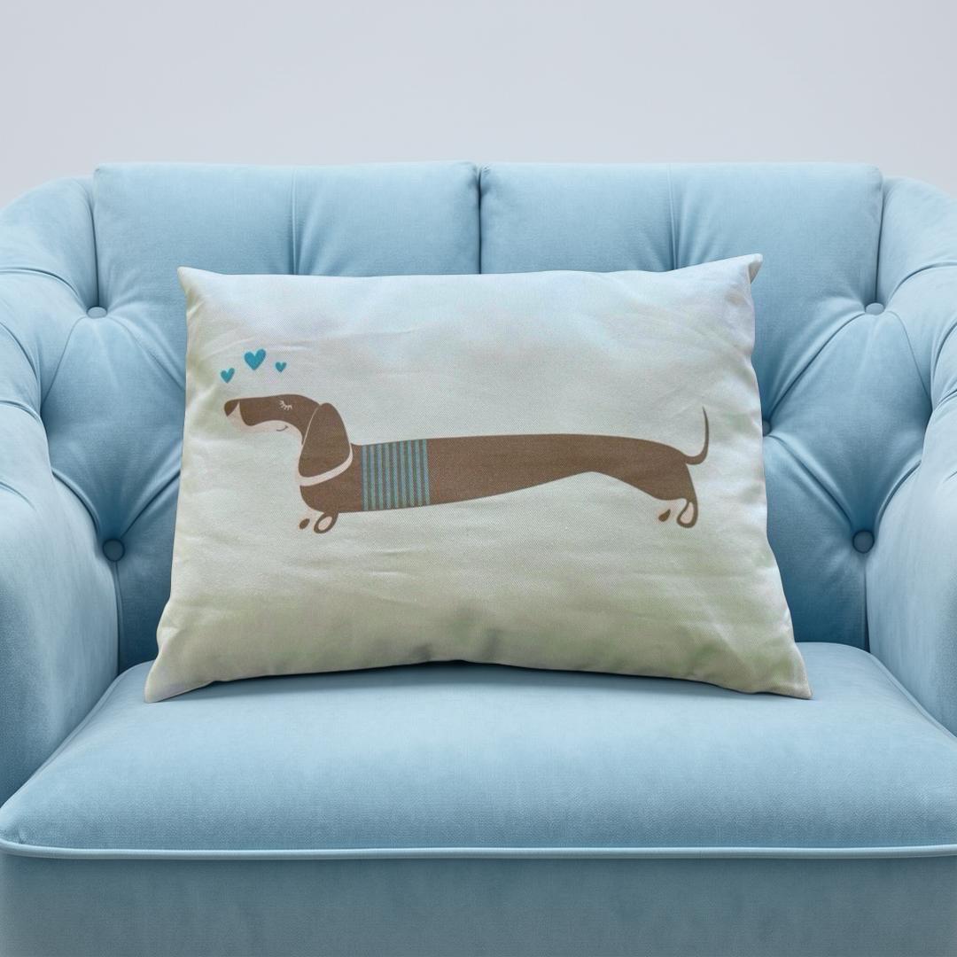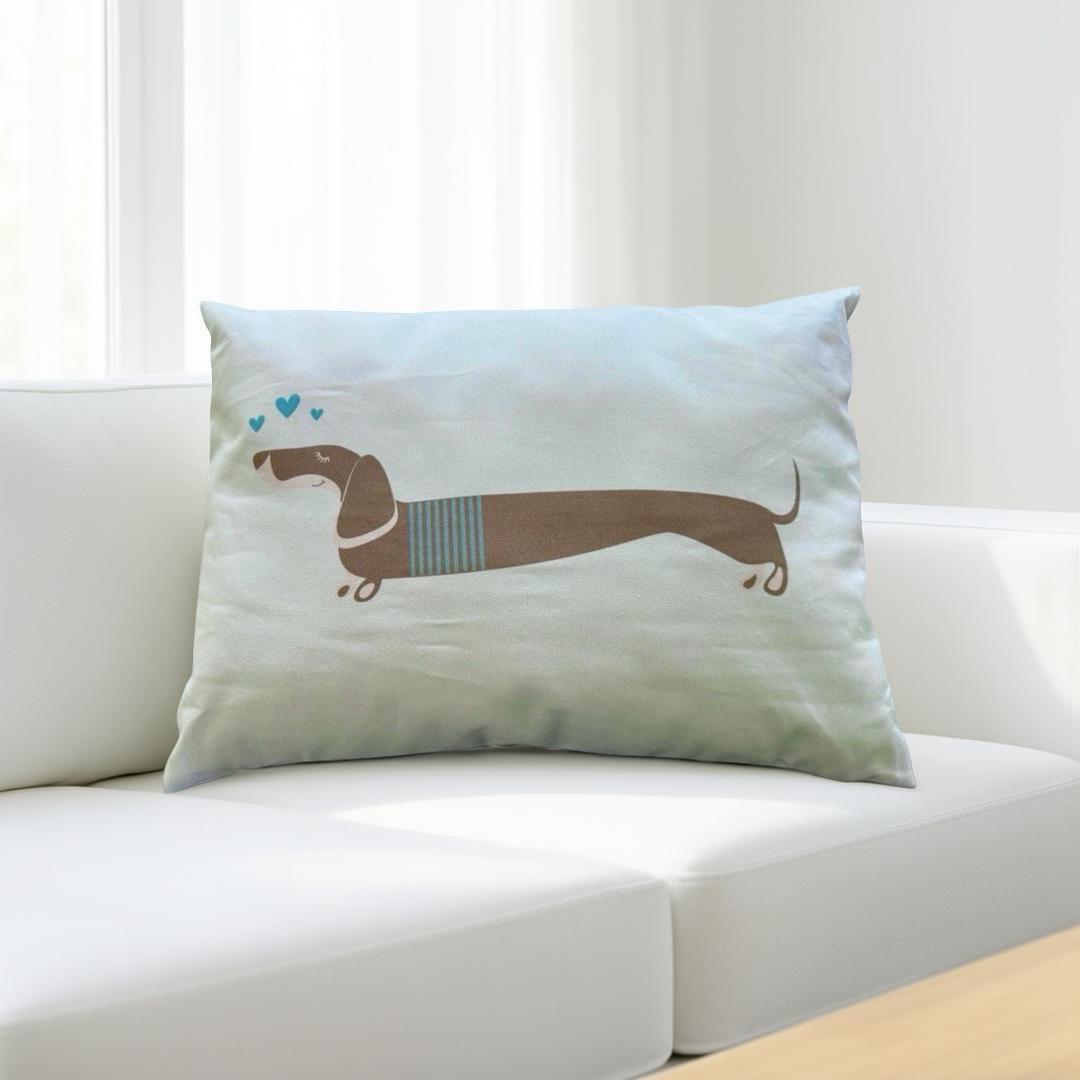 Dackel-Kissen aus Baumwolle | 50 x 35 cm inklusive Füllung | blasses Türkis