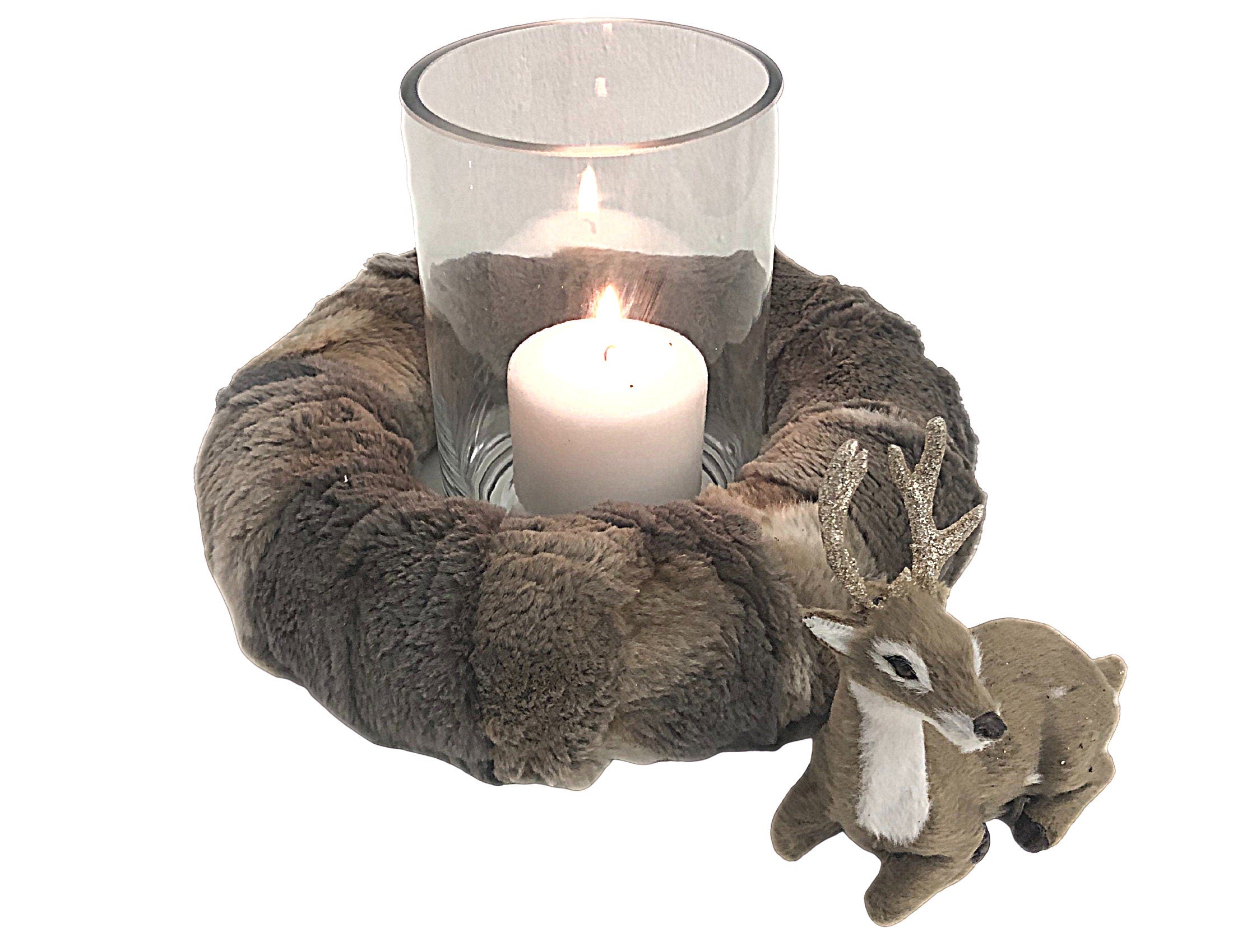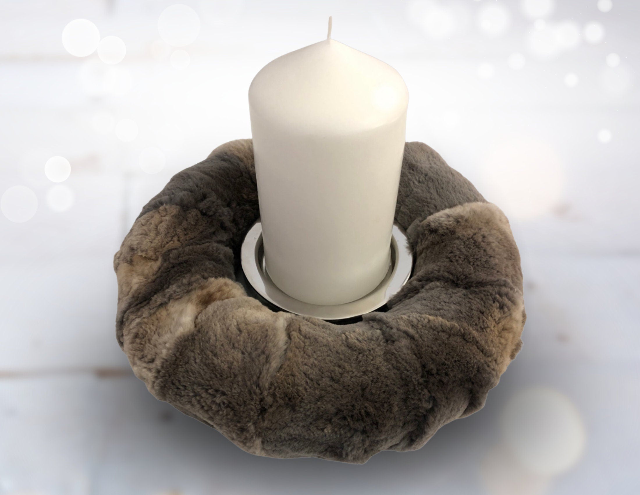 Weihnachtsdeko ganz edel: der Kranz aus Fell in schönen dunklen Brauntönen hat einen Durchmesser von ca. 25 cm. Er kann aufrecht an der Wand aufgestellt werden (allerdings nicht am Fenster aufgehängt, da die Unterseite nicht mit Fell überzogen ist) oder als Kranz auf den Tisch gelegt werden. Zahlreiche Deko-Ideen sind möglich, so z.B. ein Windlicht (zylindrische Vase) in der Mitte oder mit Rentier & Co.