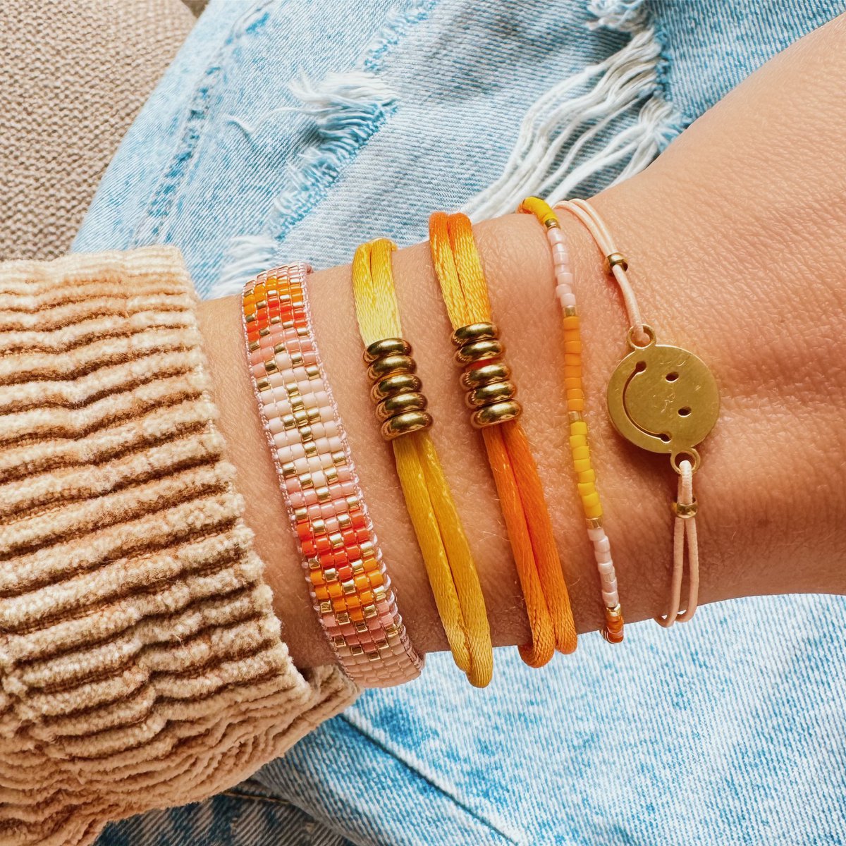 Elastisches Armband mit Smiley – Pfirsich/Gold