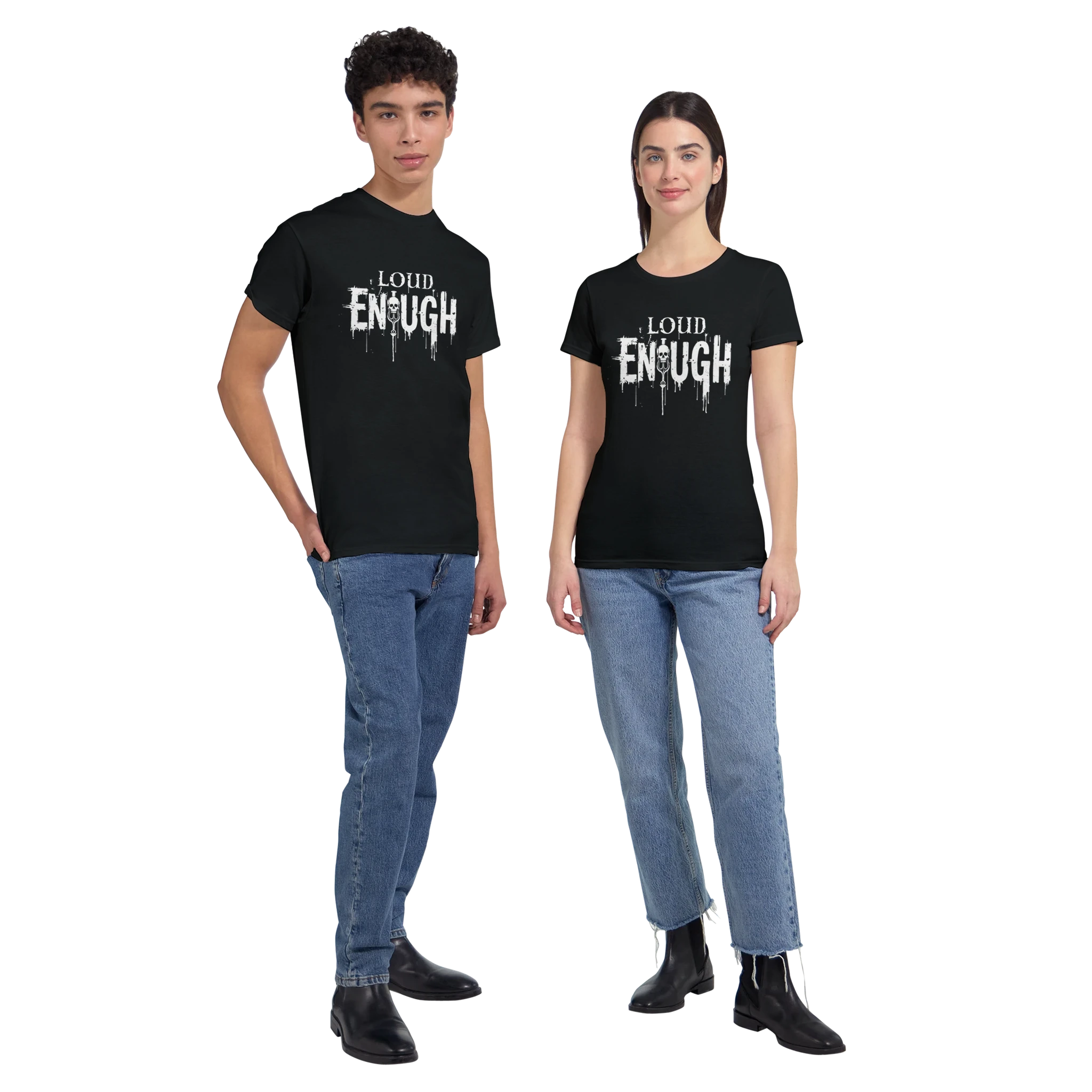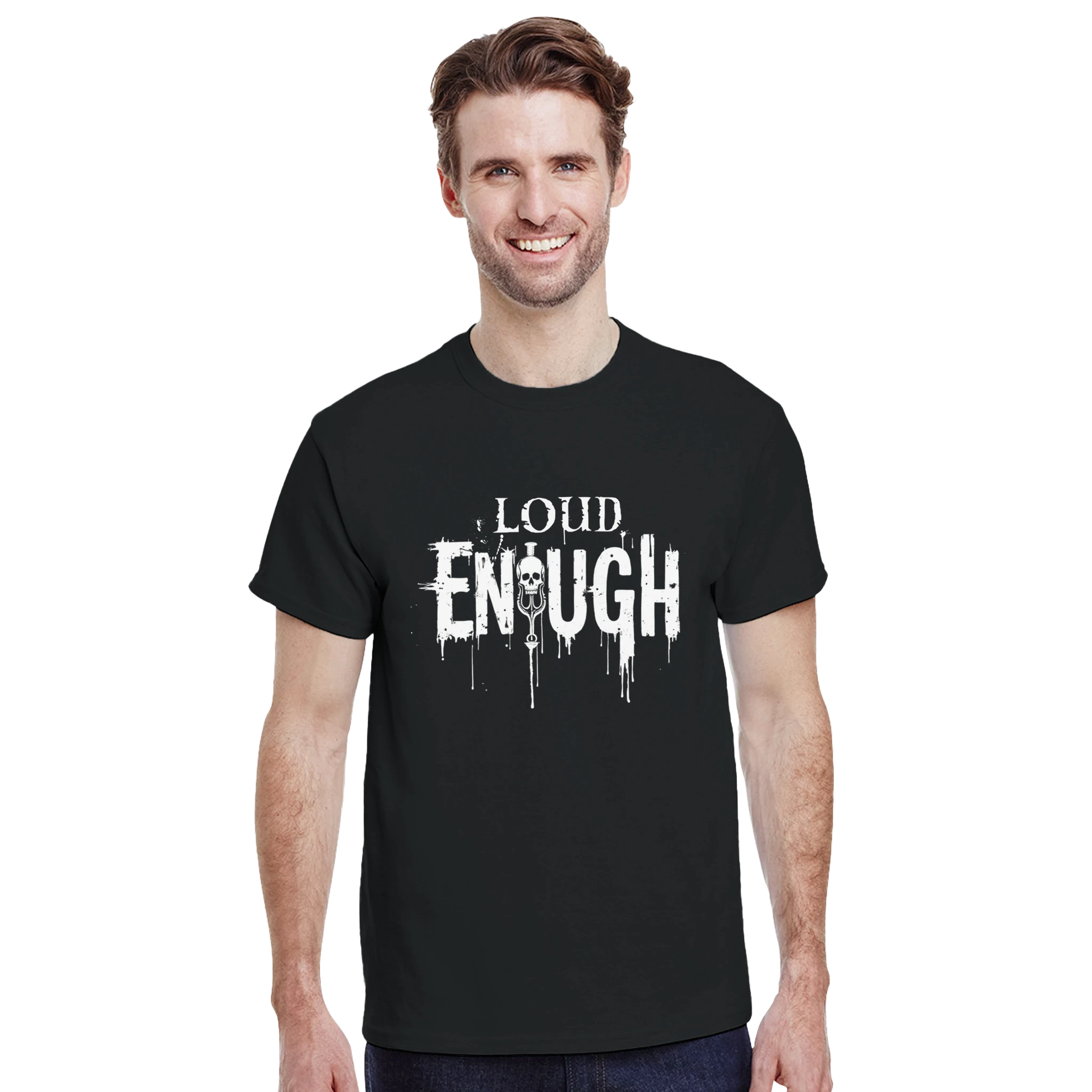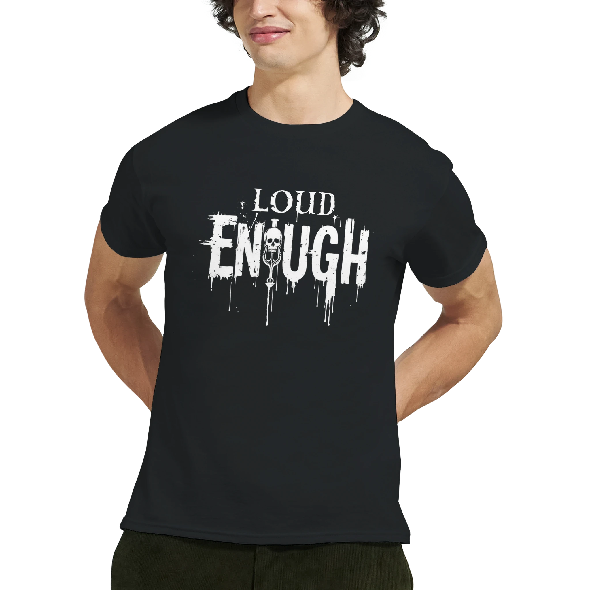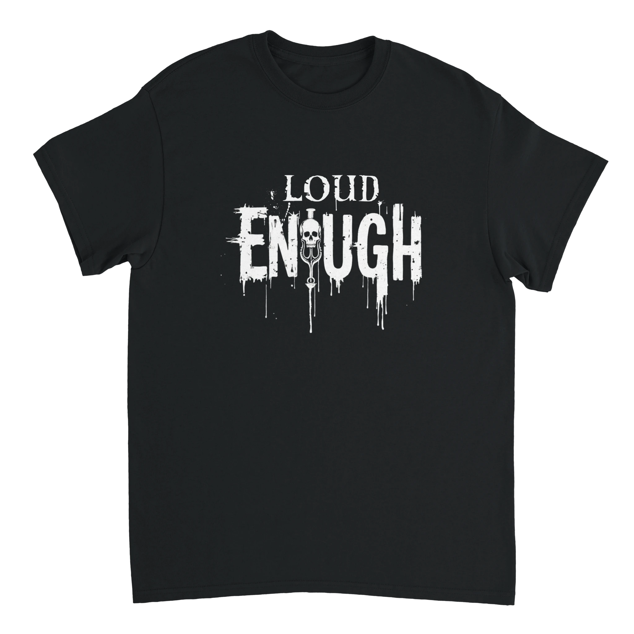 Entdecke das 'Loud Enough' T-Shirt, das perfekte Shirt für wahre Metall Fans. Dieses hochwertige schwarze T-Shirt ist aus schwerer Baumwolle gefertigt und bietet eine ausgezeichnete Kombination aus Stil und Komfort.