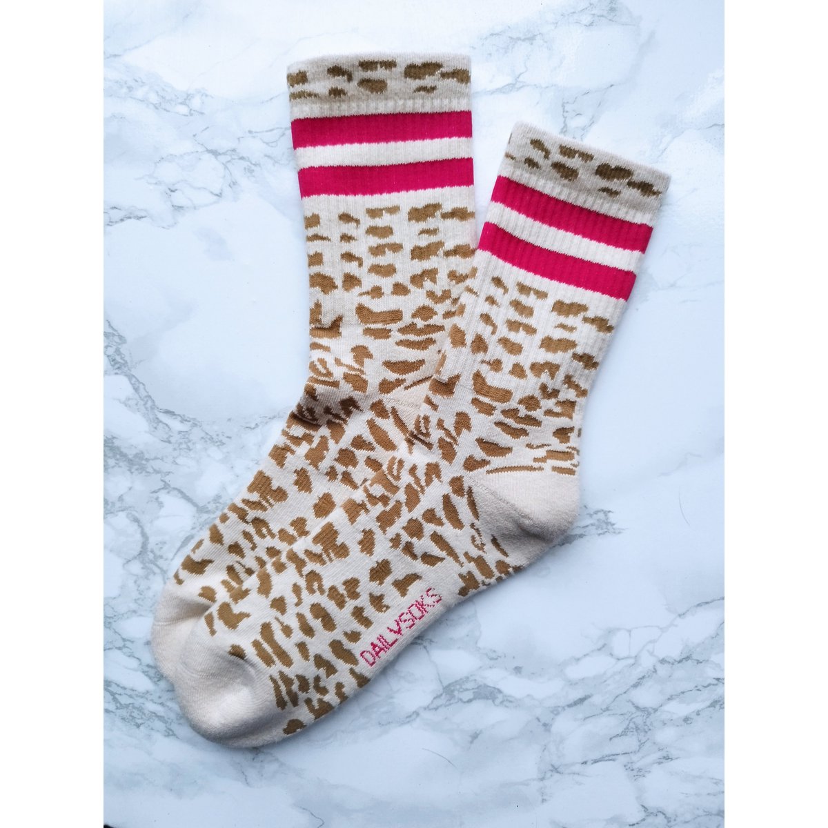 Leo im Athleture-Style Darum verliebst du dich in AMANDA Was passiert, wenn Athletic-Style auf Animal Print trifft? Echt coole Socken im Street-Style sind das Ergebnis, die durch die knalligen Streifen in rot am angenehmen Rippbündchen, das sehr guten Halt am Bein gibt, zum echten Eyecatcher werden. In Black mit der Trendfarbe Sugar Almond sind sie eine stylische Ergänzung, die sich vielfältig kombinieren lässt. Besondere Qualitätsmerkmale Die AMANDA sieht nicht nur fesch aus, sondern ist hochwertig gearbeitet und sehr angenehm zu tragen: Gestrickt aus weicher, ökotex-zertifizierte Baumwolle ist sie angenehm zur Haut. Durch die tolle Vollfrotteesohle wird jeder Schritt abgefedert und der eingearbeitete Fußring verhindert das rutschen am Fuß. So fällt AMANDA aus AMANDA fällt ganz normal aus. Bei einem 39er Fuß, solltest du auch Gr. 39/42 wählen. Weitere verfügbare Farben schwarz/rot, schwarz/grün, latte/schwarz Pflegehinweis Alle DAILYSOCKS sind Socken für jeden Tag und somit ganz pflegeleicht. Du kannst AMANDA ganz normal bei 30 Grad waschen. Vom Trockner raten wir jedoch ab, da die Textilien im Trockner immer extrem beansprucht werden. Materialzusammensetzung: 80% Baumwolle, 17% Polyamid, 3% Elasthan