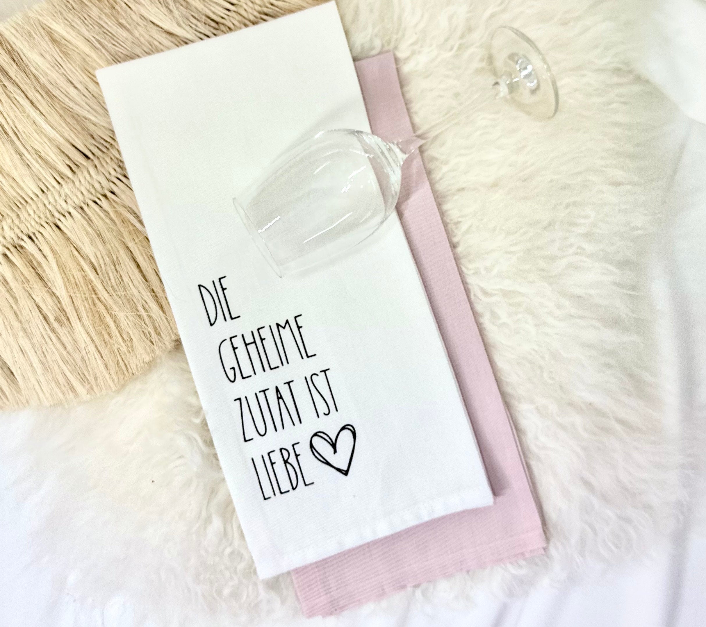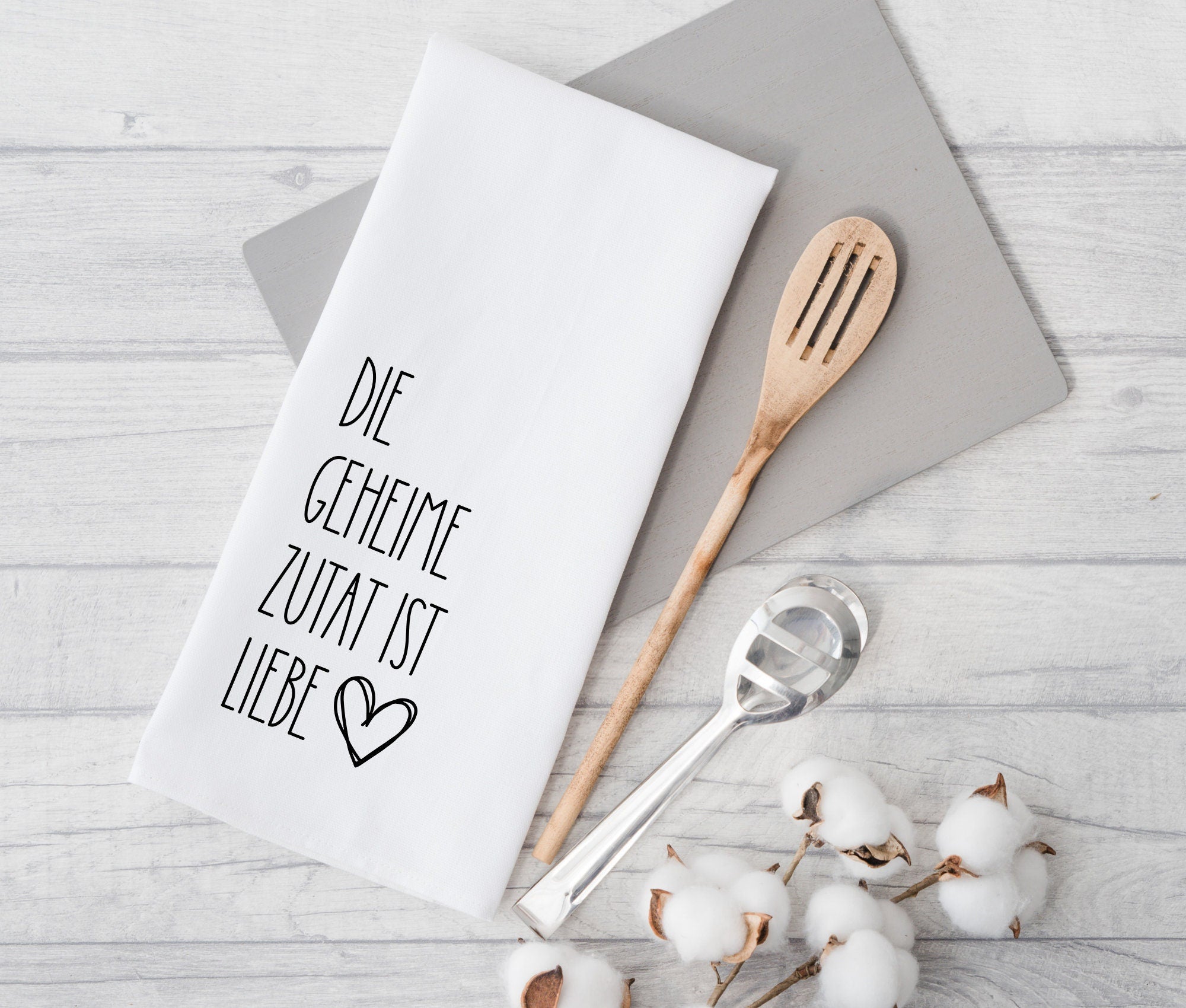 Original tea towel with the words "The secret ingredient is love". This cotton tea towel is a nice gift idea for anyone who likes to cook and attaches great importance to a beautiful and unique design, even for the small everyday objects in their kitchen.