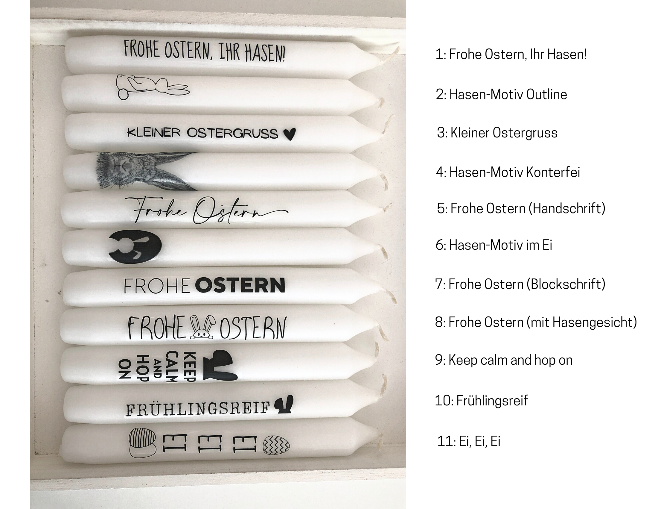Put together your candle sets accordingly by simply entering the 2 or 3 numbers of the motifs into the personalization field! You will receive one ready wrapped in cling film