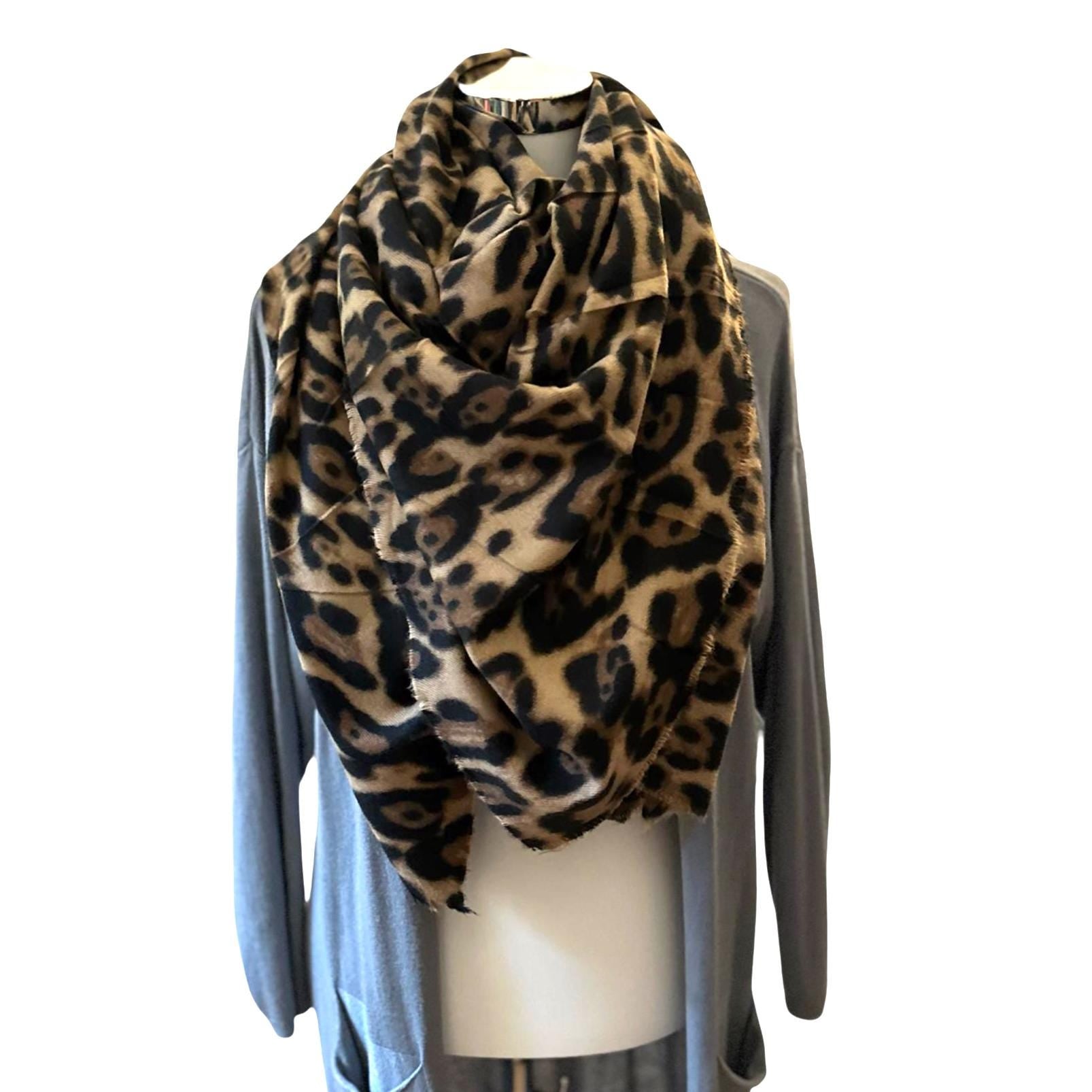 Leo Schal XXL | großes quadratisches Tuch im Leomuster | 135 x 135 cm | Viskose Schal in braun beige