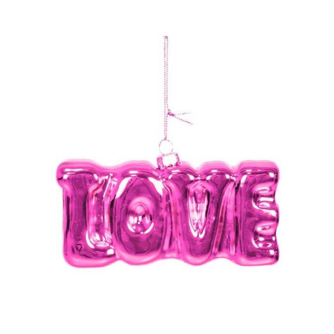 Ornament Weihnachtshänger Love - Rosa - Glas - 4,5x3,5x7,5cm