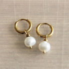 SS350 - Creolen aus Edelstahl mit Tropfen aus Süßwasserperlen - Gold