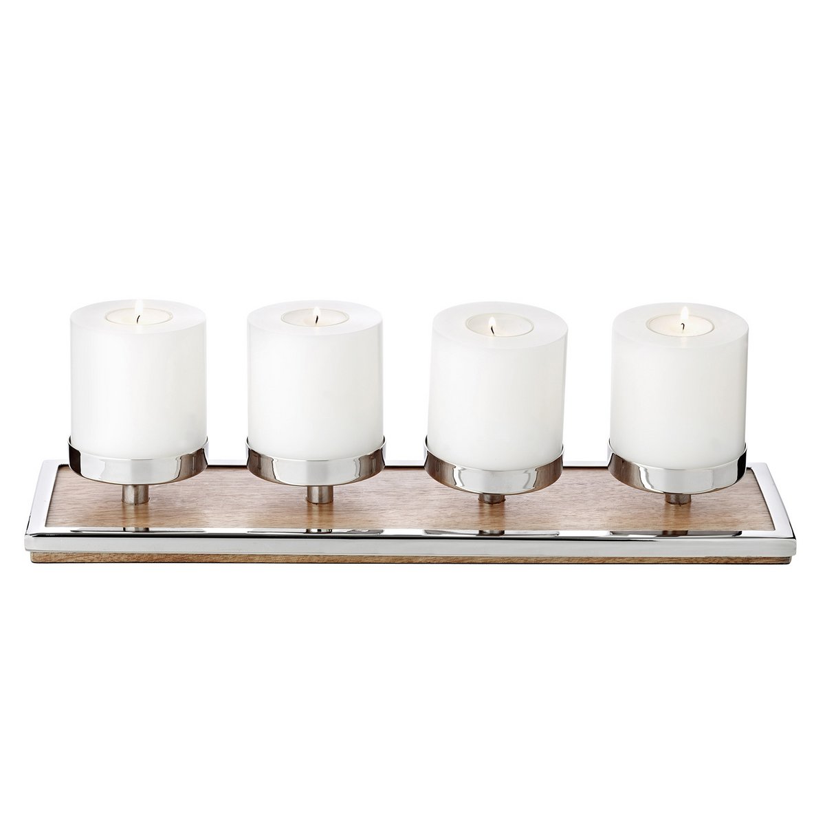 Adventskerzenhalter Ruti (Höhe 5,5 cm, Länge 45 cm), Silberfarben, Edelstahl/Mangoholz,