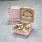 Schmuck-Etui für die Reise | personalisierte Schmuckbox | kleine Schatulle mit Namen | rosa, pink, schwarz, beige
