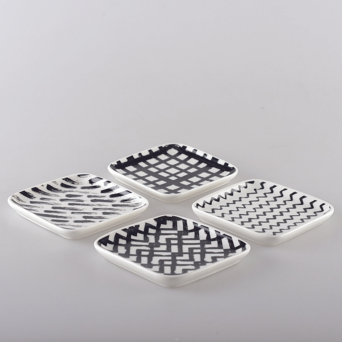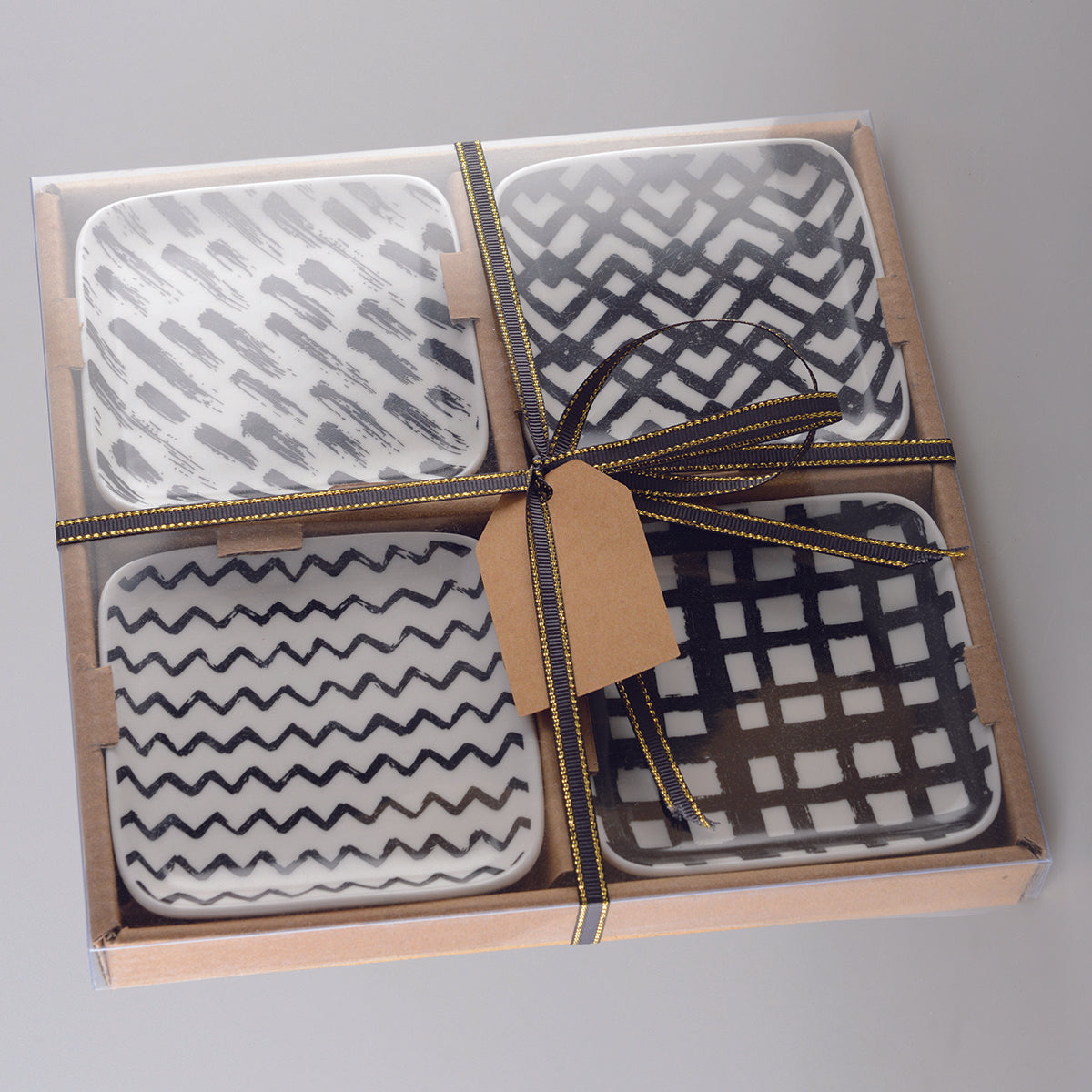 Schälchen Set | schwarz weiß gemustert | 4 er SET | 9,5 cm | Keramik Schalen Teller Dip
